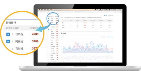 舆情排行榜对英超20支球队进行了实时监控,每轮球队的舆情值可以清晰的辅助用户找到过热球队。