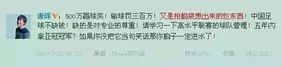 打脸预测不光国外有,国内也有不少,其中最出名的就是现任上海上港助教的谢晖。2010年,在广州恒大刚刚被收购后,尚在中甲的他们喊出了“五年内夺亚冠”。前国脚谢晖言辞激烈地讽刺了恒大亚冠目标,“五年内拿亚冠冠军?如果你没把它当句笑话那你脑子一定进水了!””结果大家都看见了,恒大在3年后的13赛季夺得亚冠冠军,两年后的15赛季再夺亚冠冠军。