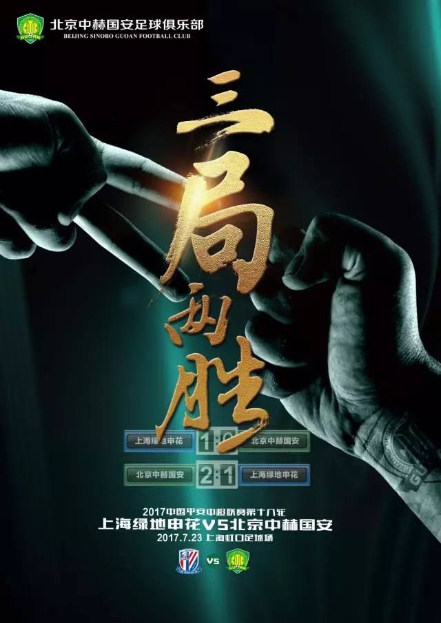 2017年7月23日,北京中赫国安将在上海虹口体育场挑战上海绿地申花,本赛季前两次对决,双方各胜一局。此役,北京中赫国安能否实现“三局两胜”?你看好北京国安是赢球是一方吗?