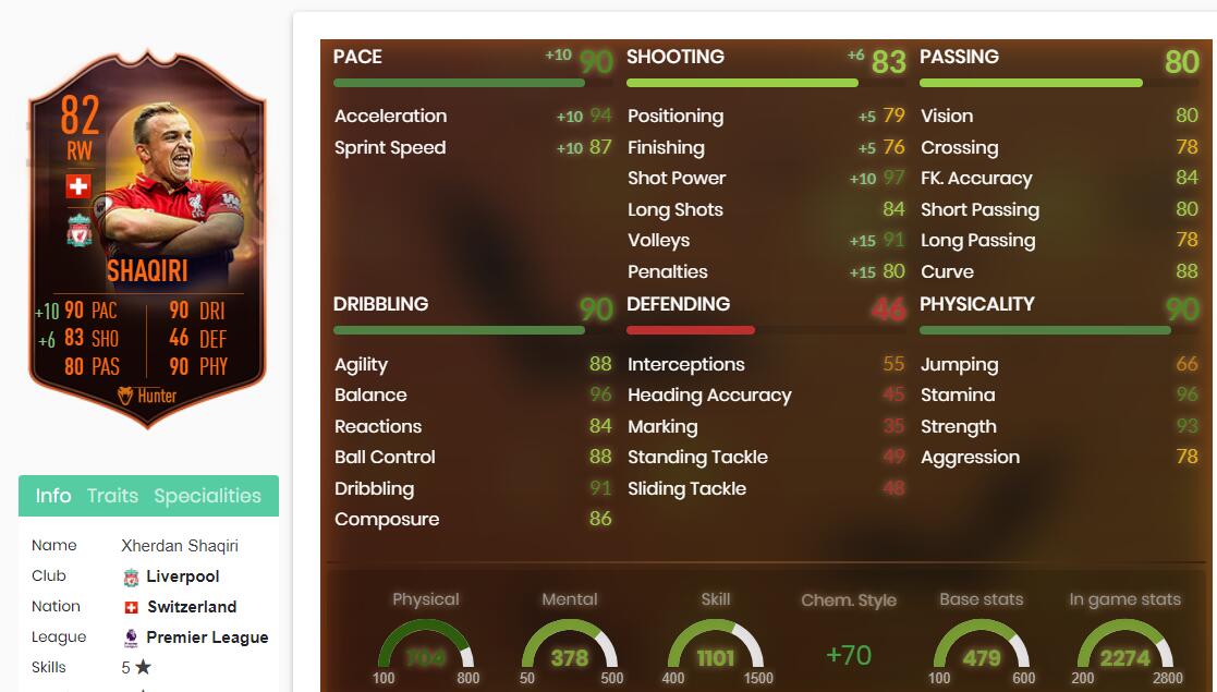 沙奇里的模型属于矮小、宽大,配合初始盘带+身体90的数据,吃上HUNTER就是瑞士胡尔克,而且盘带更灵活。看了YOUTUBE主播的测评,沙奇里在禁区内根本推不倒,搓射能力也很强势。在英超10万+边锋稀缺的情况下沙奇里可以一战。