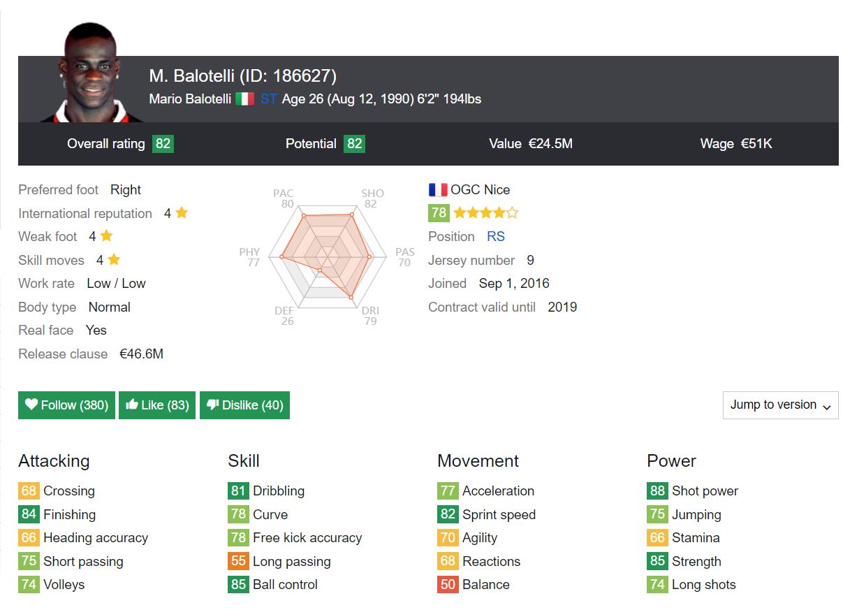 在FIFA18 UT模式中,出色的前锋需要具备速度、跑位、盘带以及优秀的射术。在生产高效前锋的法甲从来不缺乏选择余地,不过几位知名的射手入卡瓦尼、姆巴佩价格太高,那么谁才是性价比中锋的代表呢?小编认为他就是巴洛特利。