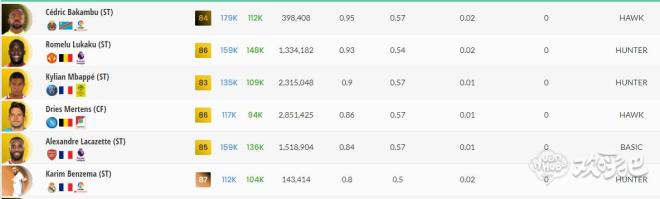 FIFA18发售至今,相信各位玩家在UT模式里已经构建了一套自己心中的最佳阵容。当然也有许多萌新对于如何挑选球员有所纠结,今天撸哥通过百万玩家的大数据来分析谁才是性价比最高的射手。
