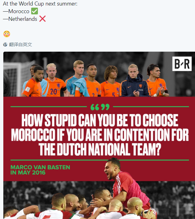 结果摩洛哥以唯一一支0失球对于晋级世界杯,而荷兰在小组赛便惨遭淘汰。