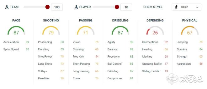 首先热苏斯最大的优势是平衡、敏捷和速度。这保证了你用用他顺畅地盘带过人,直捣黄龙。92的平衡可以让他被贴身时依旧能良好地护住球并完成传球和射门。所以你可以看到UT英超玩家几乎人手一个热苏斯,因为他真的太强了。