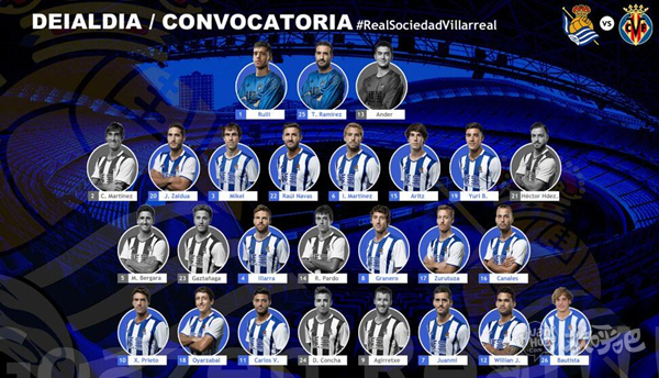 北京时间2017年1月5日凌晨两点,西班牙国王杯将进行一场八分之一决赛的首回合较量,皇家社会将坐镇主场阿诺埃塔球场迎战黄色潜水艇比利亚雷亚尔。赛前,皇家社会主帅萨科里斯坦公布了大名单。