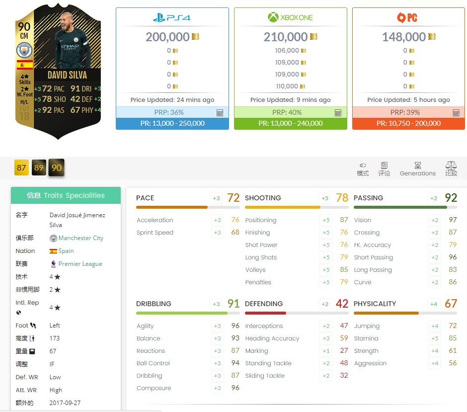 席尔瓦是一张可玩性很强的卡,在经历了三黑后,一些弱项数据比如速度、射门和体能都有了质的提升,目前这张卡PC在14万左右,如果喜欢席尔瓦一黑或者普卡的玩家,那么多花一点钱提升5点左右的能力还是很值得的。当然这张卡不是每个人都能用好,毕竟比达尔、那英这样的全能战士在周赛上会更加实用。