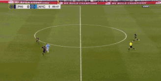 在比赛第90分钟,纽约城球员后场将球踢出,比利亚刚刚过中圈时便在和对手争抢中起脚吊射破门,据相关数据统计显示,这球的吊射距离为53.5码(48.9米),这是自2012年以来美国大联盟最远距离的进球。
