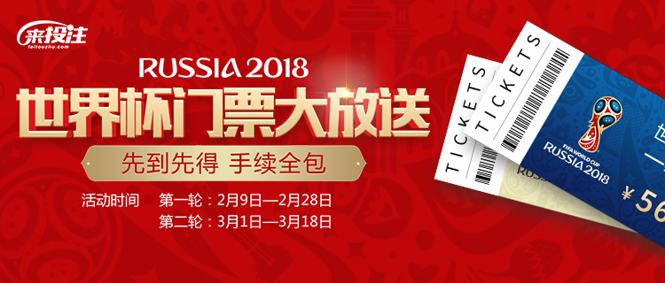 为了迎接这届世界杯,也为了让球迷们更全面地感受世界杯带来的乐趣来-投-注为回馈广大魔友们的厚爱,特地为魔友们准备了俄罗斯世界杯门票,让大家切身体会到世界杯的火热氛围。点击前往获取门票>>